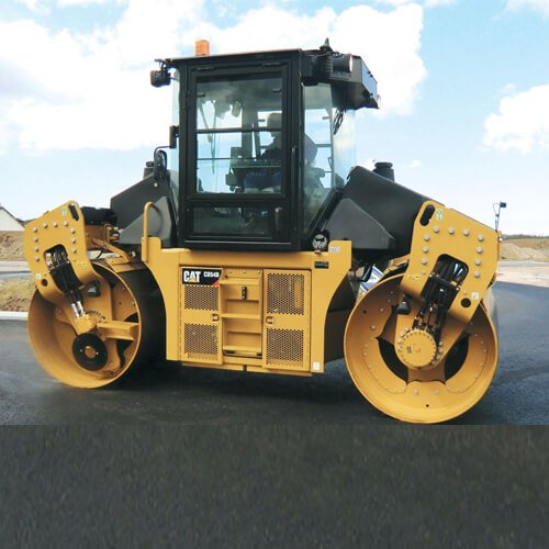 The Cat® CD54B is a 10 ton roller with 1700 mm (67″) tandem vibratory drums. It excels on a variety of asphalt mix designs as well as other granular materials. It features exceptional visibility and control, smooth operating powertrain, versatile vibratory systems, Cat Compaction Control, and the industry leading water spray system.